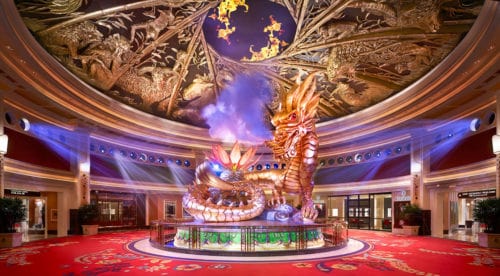 Hotel dengan desain mewah dan unik dari luar, gemerlap bias lampu kota Macao membuat kaca gedung Hotel Wynn yang berwarna emas semakin gemerlap. Tidak hanya tampak luar yang membuat hotel ini indah, kita bisa masuk ke dalam hotel Wynn dan melihat-lihat desain lobby utama dari Hotel Wynn ini. Selain menikmati pertunjukan Air Mancur Wynn Hotel yang Spektakuler, ada beberapa hiburan kelas dunia lainnya yang dipersembahkan oleh Hotel Wynn, Sperti Dragon of Fortune, Tree of Prosperity dan Moon Jelly Aquarium yang tidak kalah menarik. Sempatkan waktu kita untuk menyaksikan pertunjukan Air Mancur Wynn Hotel yang Spektakuler ini ya, happy holiday 🙂