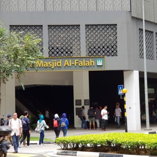 Selain kita bisa asyik berbelanja dan kuliner di daerah Orchard Road, bagi turis yang berumat muslim semakin nyaman menghabiskan waktu di Orchard. Terbukti dengan keberadaan sebuah masjid di area ini. Masjid Singapore Dekat Wisata tersebut bernama Al-Falah, letaknya di dekat The Paragon atau sekitar 2 menit dari Toko Apple di Orchard Road. Kita tak perlu khawatir kesulitan menemukannya, karena di depannya terdapat papan yang cukup besar bertuliskan Masjid Al-Falah.