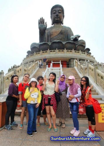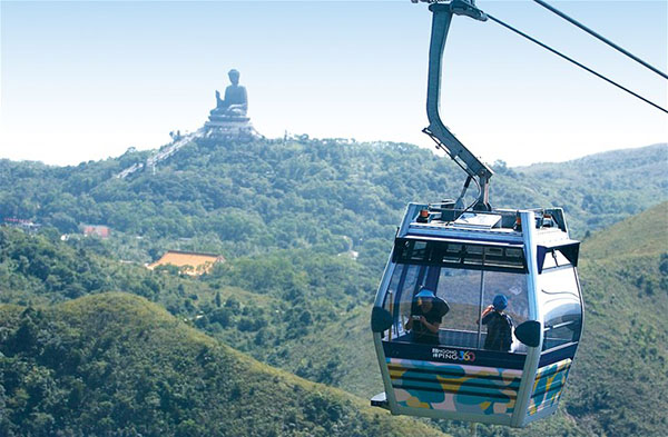 Pemandangan Spektakuler melewati 3 bukit dan lautan. dari atas sini kita bisa melihat airport dan menyaksikan pesawat terbang antri take off dan landing. Melihat patung Big Buddha Hong Kong yang berada di puncak bukit.