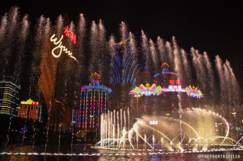 Menuju pekarangan Wynn hotel untuk melihat air mancur setiap 15 menit sekali. (tinggal nyeberang dari Lisboa Hotel) (kurang lebih habis 1 jam Lisboa dan Wynn hotel)