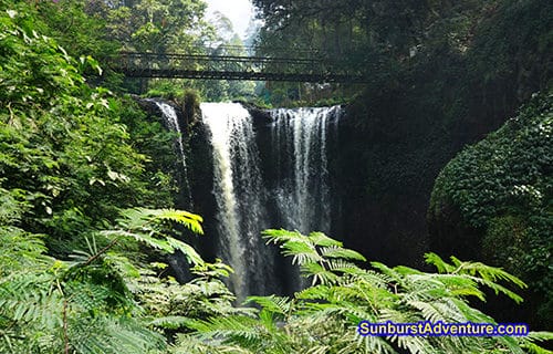 Lihat air terjun kembar di Maribaya. Air terjun dalam bahasa sunda biasa disebut dengan Curug. Nah curug ini bernama Curug Omas.